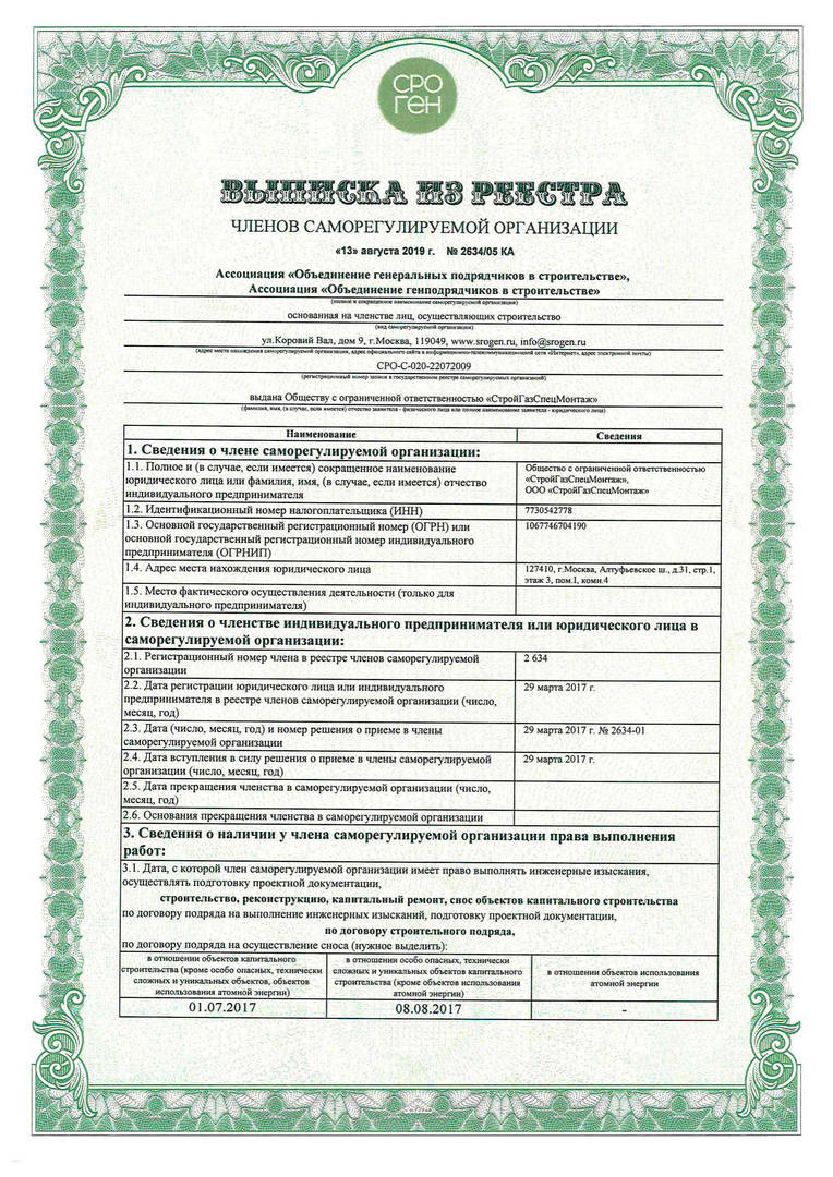 - Свидетельство о допуске к строительству объектов капитального строительства (СМР). Выписка из реестра членов саморегулируемой организации от 13.08.2019г.