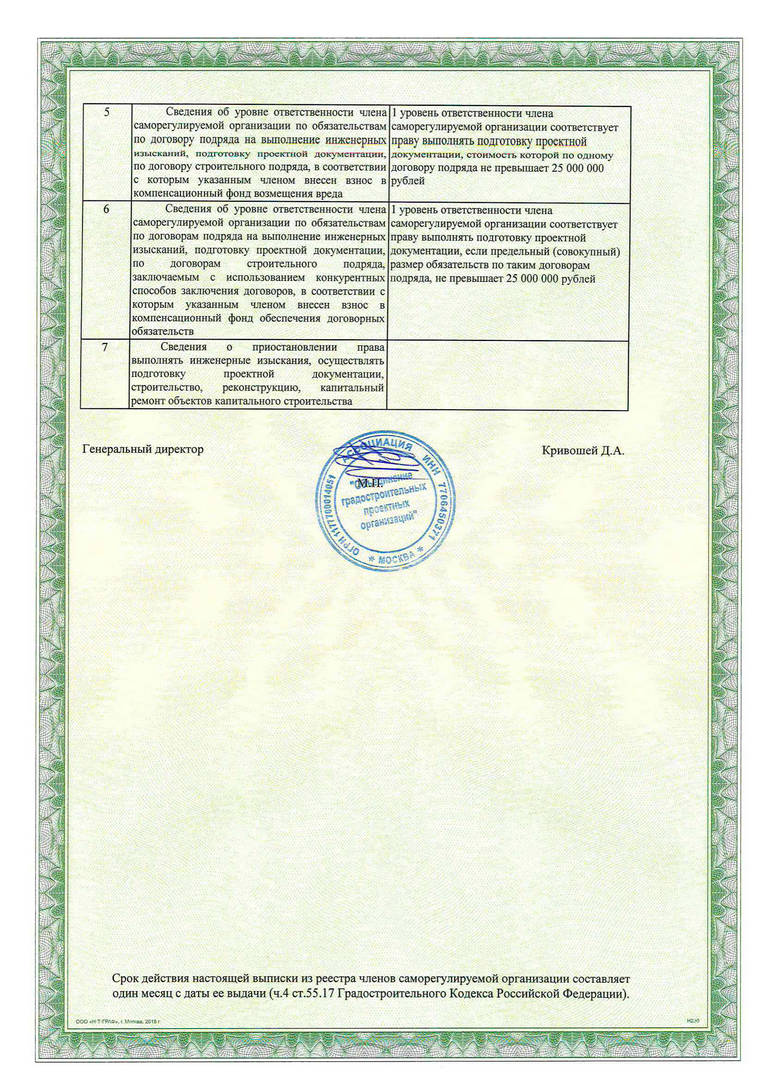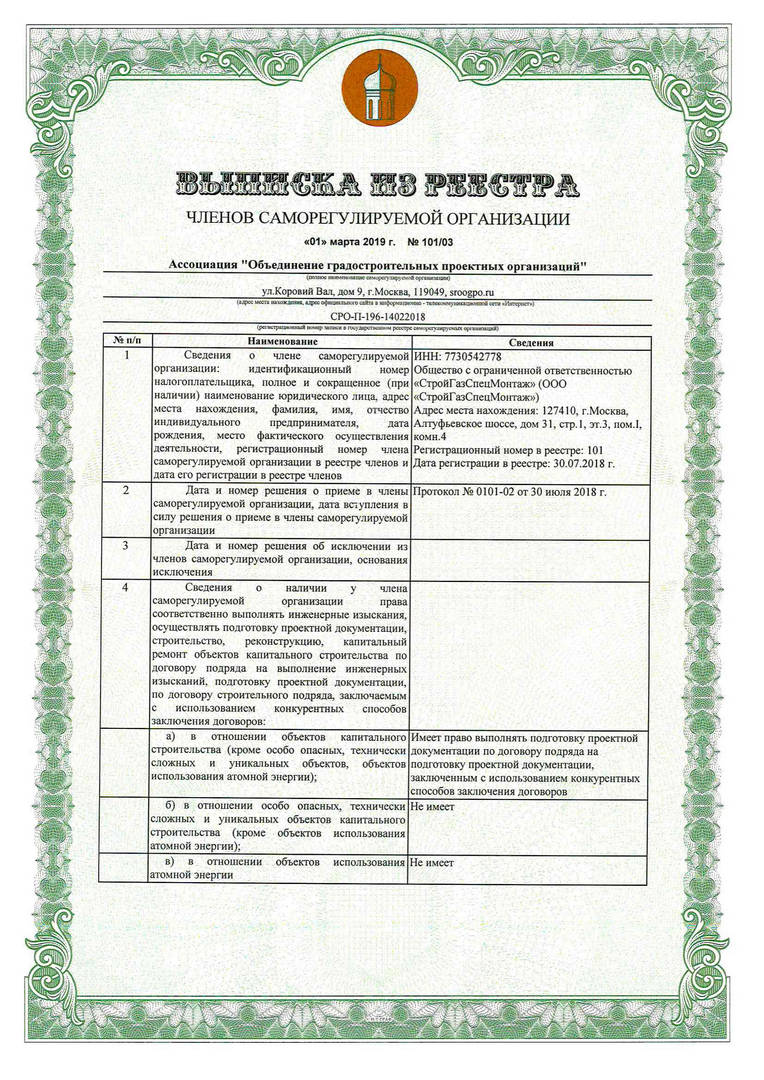 - Свидетельство о допуске к проектированию объектов капитального строительства (СМР). Выписка из реестра членов саморегулируемой организации от 01.03.2019г.